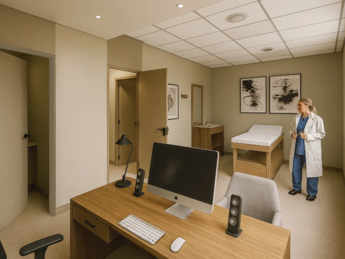 Espacios equipados para médicos independientes con acceso a tecnología, soporte administrativo y red de pacientes del ecosistema Reliv.